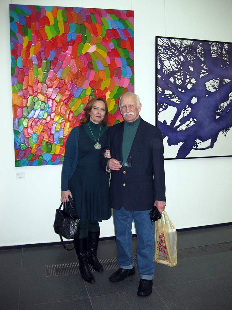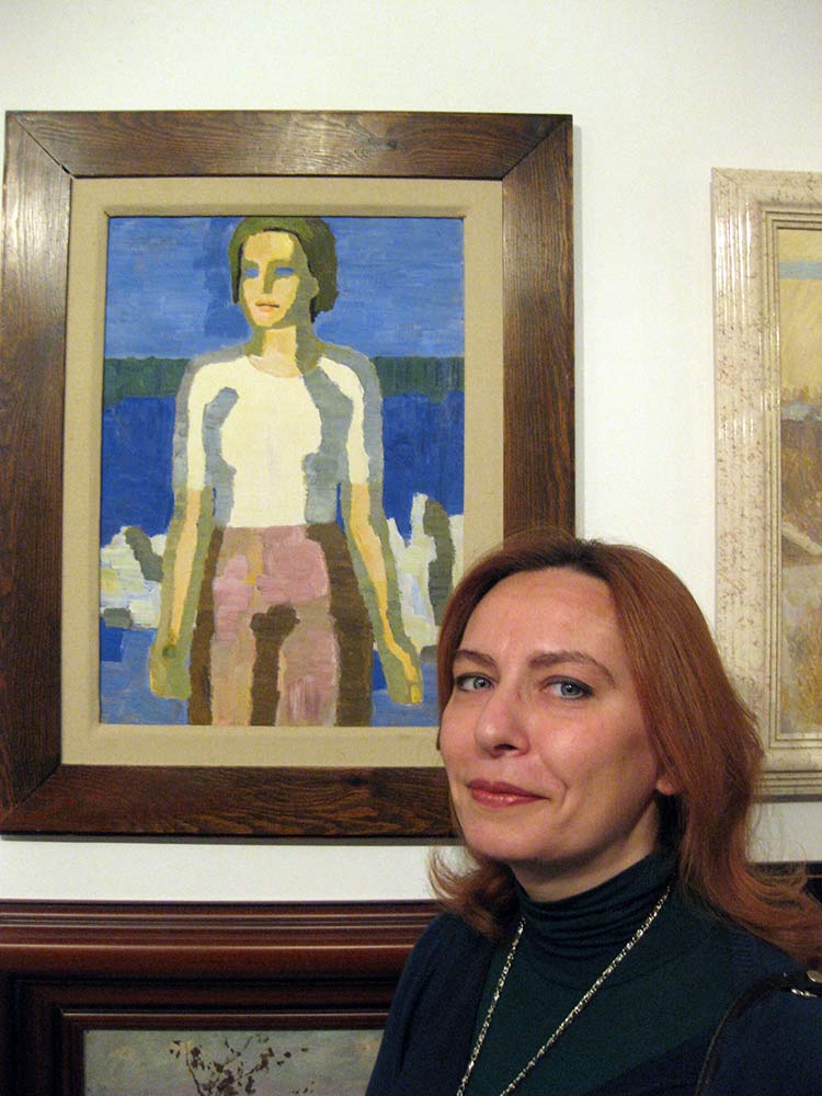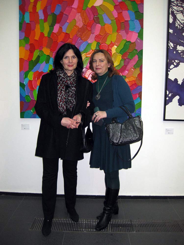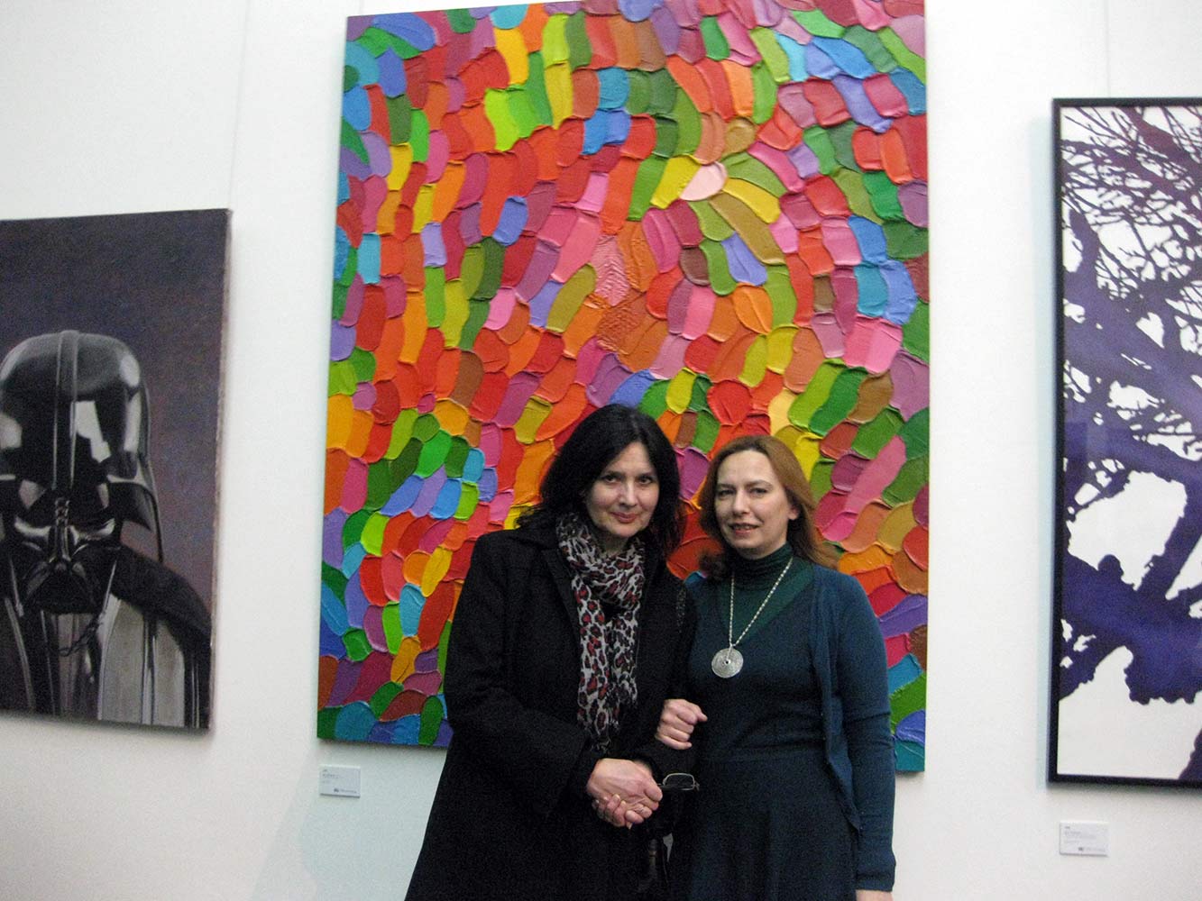 Актриса Поліна Лозова з Івою Павельчук на тлі Автопортрету з Революцією |
