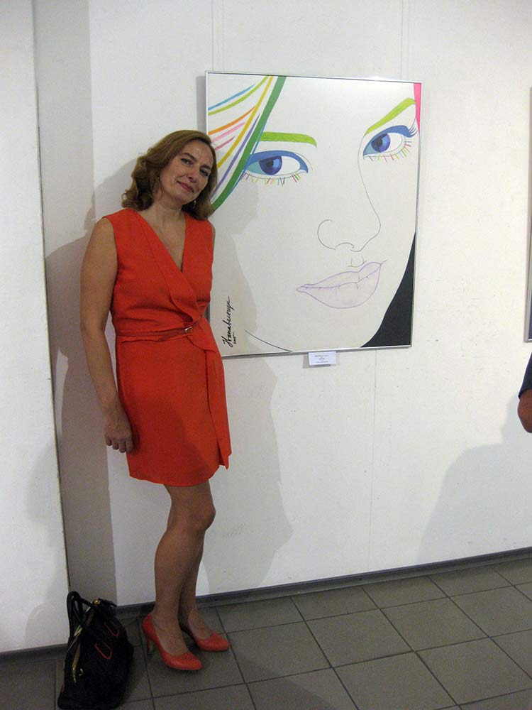 Павельчук І. біля твору Веселка під час презентації Всеукраїнської Трієнале Графіки |