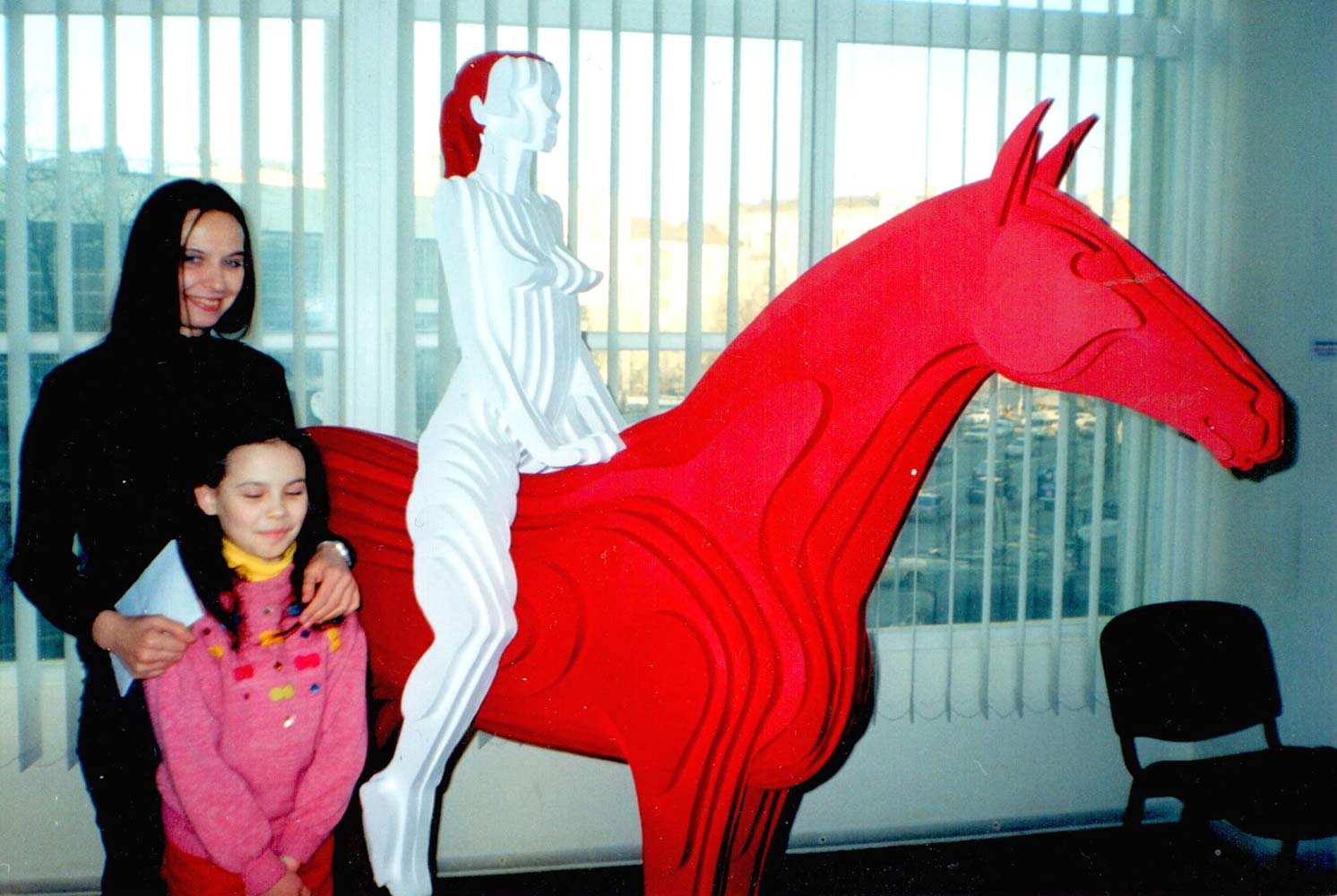 Іва Павельчук з Міхасею біля паперової Амазонки О. Лідаговського |